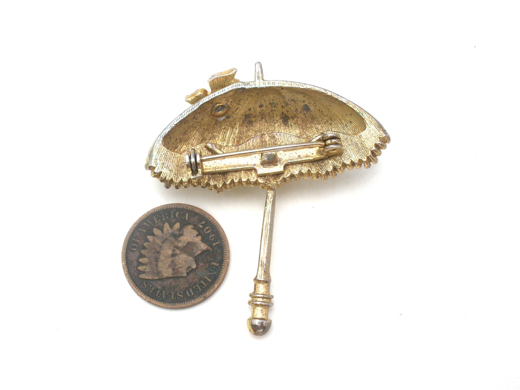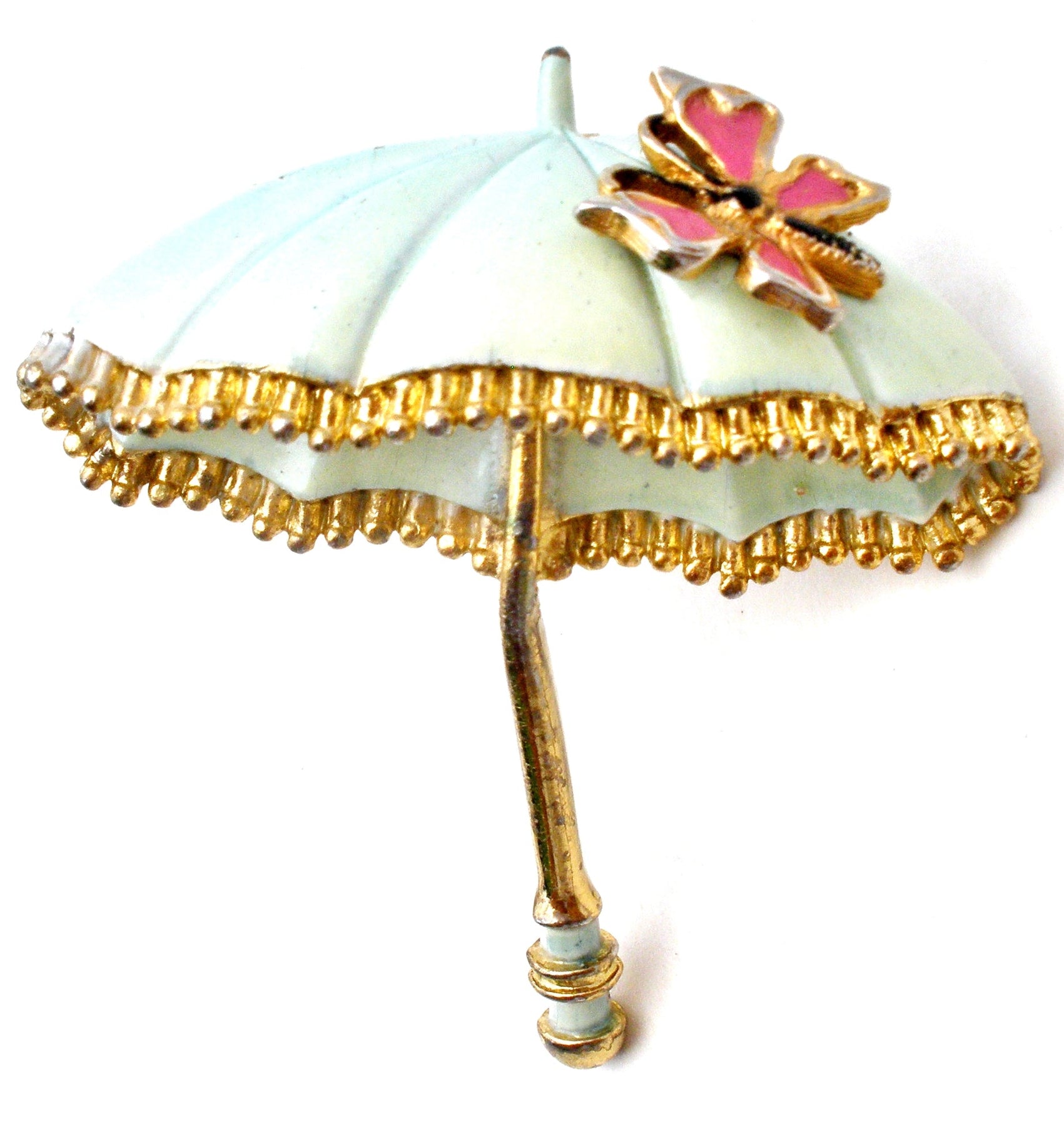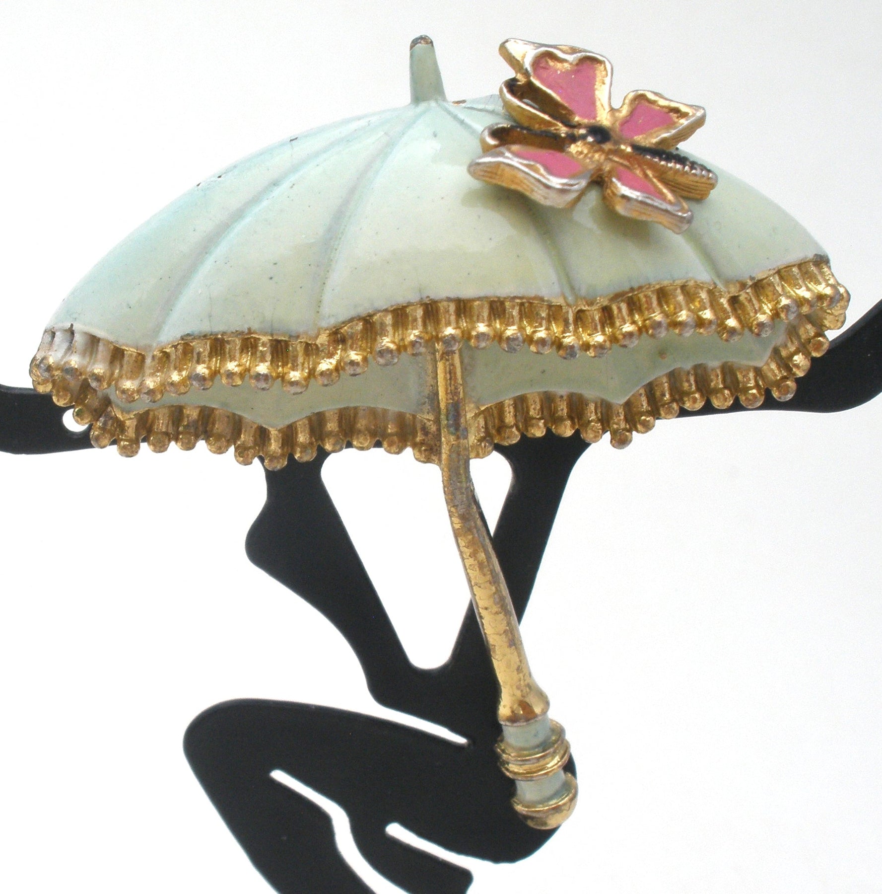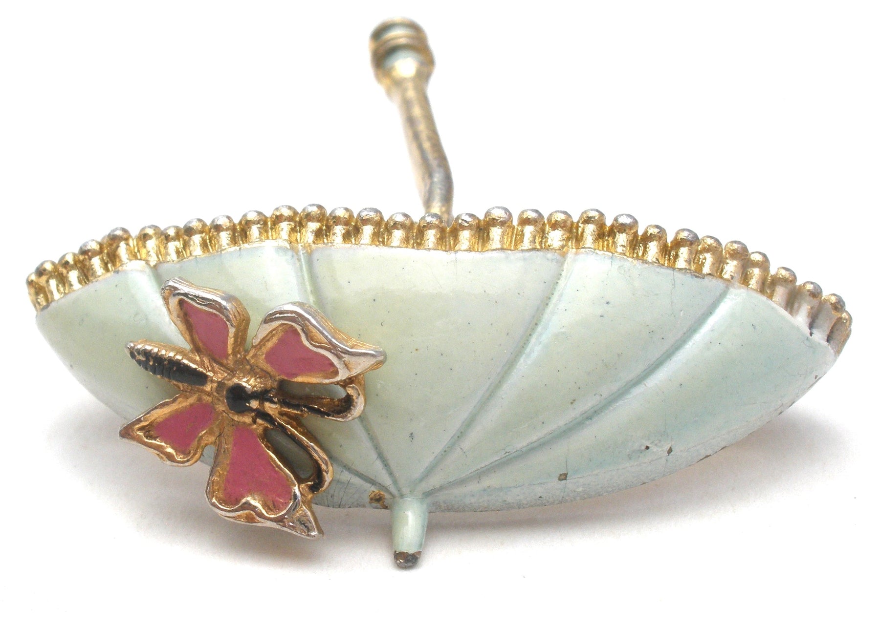Vintage Πράσινη Καρφίτσα Ομπρέλας Πεταλούδας από Σμάλτο